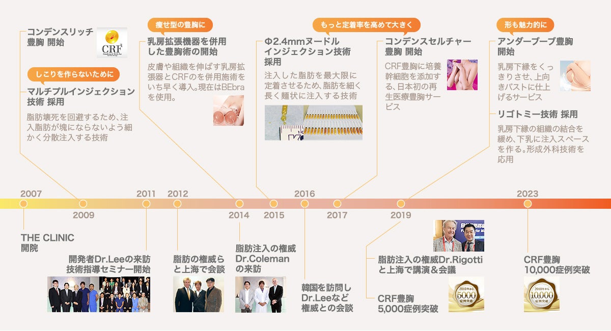 THE CLINIC の歴史はコンデンスリッチ豊胸とともに歩んだものでした。しかしここで満足することなく、これからも皆さまの理想により近づけるよう、次の3つを根幹に、脂肪施術の開発と普及に尽力してまいります。