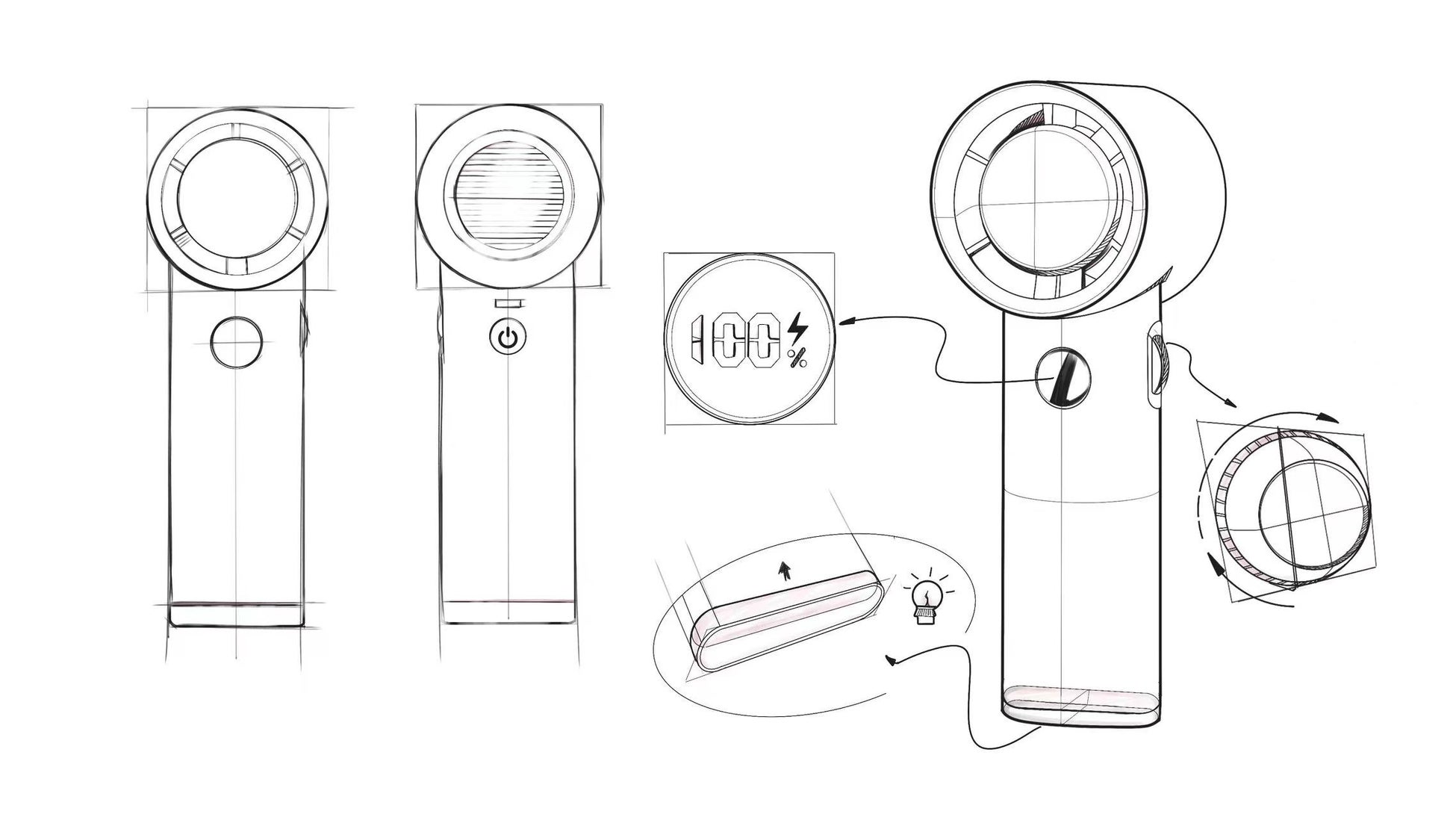 単純に新しいモーターに変更するだけでは、ドライヤー並みの風量には届きませんでした。また安全性にも欠けていました。そのため、羽根が指に触れない筒型の扇風機に形状を変更するという革新的なアプローチを考えました。この筒型のデザインは、より集中した風を提供することが可能です。