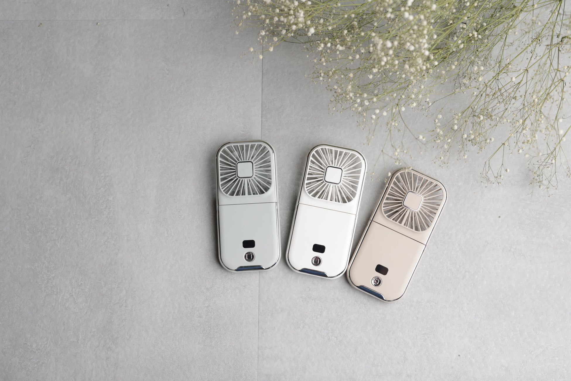 冷却プレートを搭載し、まるでICE(氷)に触れた時のようなひんやり感をいつでもどこでも体感できるハンディファンです。3段階の風量調節機能が付いており、個々の好みや環境に合わせて風の強さを調整できます。