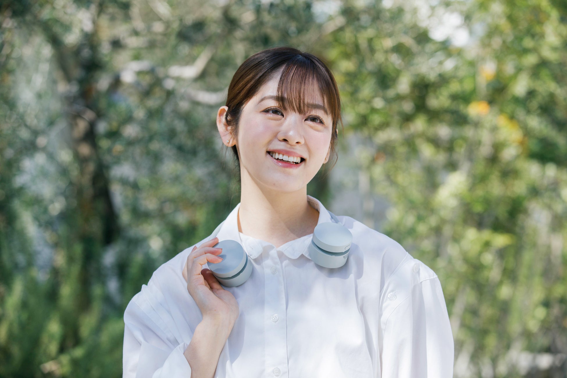 ハンズフリーで使えるため、自由な動きを妨げずに快適な風を楽しむことができるネックファンです。くるくると折りたたんでコンパクトになるので場所を取りません。同色の収納ポーチ付きで持ち運びにも便利。3段階の風量調節機能も搭載されており、個々の好みや環境に合わせて風量を調節できます。