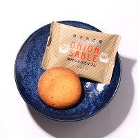 明治25年創業の老舗がつくる洋菓子。射手矢農園(大阪府泉佐野市)の泉州プレミアムたまねぎをつかった香ばしいサブレです。