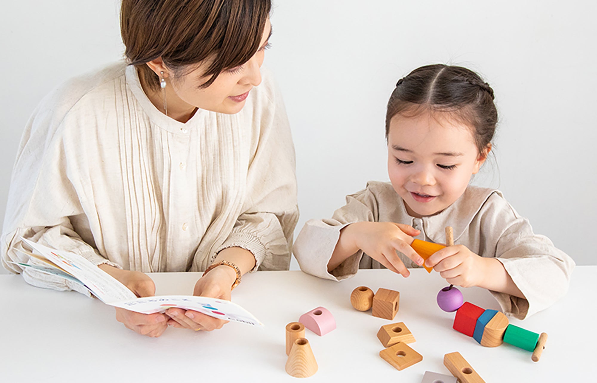 無限に遊べると言っても、新しいあそびかたを見つけるのが難しそう。どうやって子どもに声掛けをしたらいいかわからない・・そんな心配がある方でも大丈夫。子育てを応援するおもちゃでありたいという想いから、たくさんのあそび例や、子どもへの声掛けのヒントが詰まった【ブックレット】が付いています。