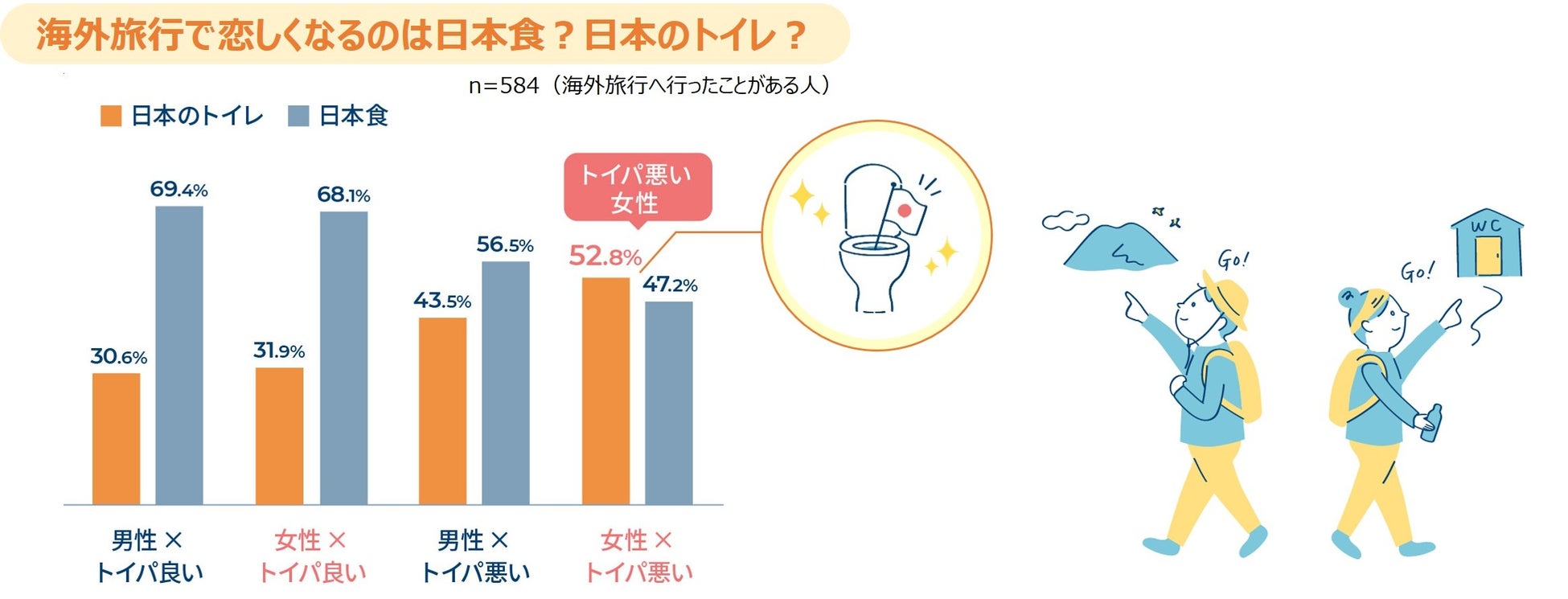 トイパが悪い女性は、海外旅行で「日本食より日本のトイレが恋しくなる」と回答