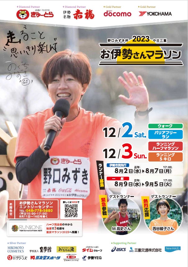 12月2日(土)、3日(日)「野口みずき杯 2023 中日三重 お伊勢さんマラソン」開催!