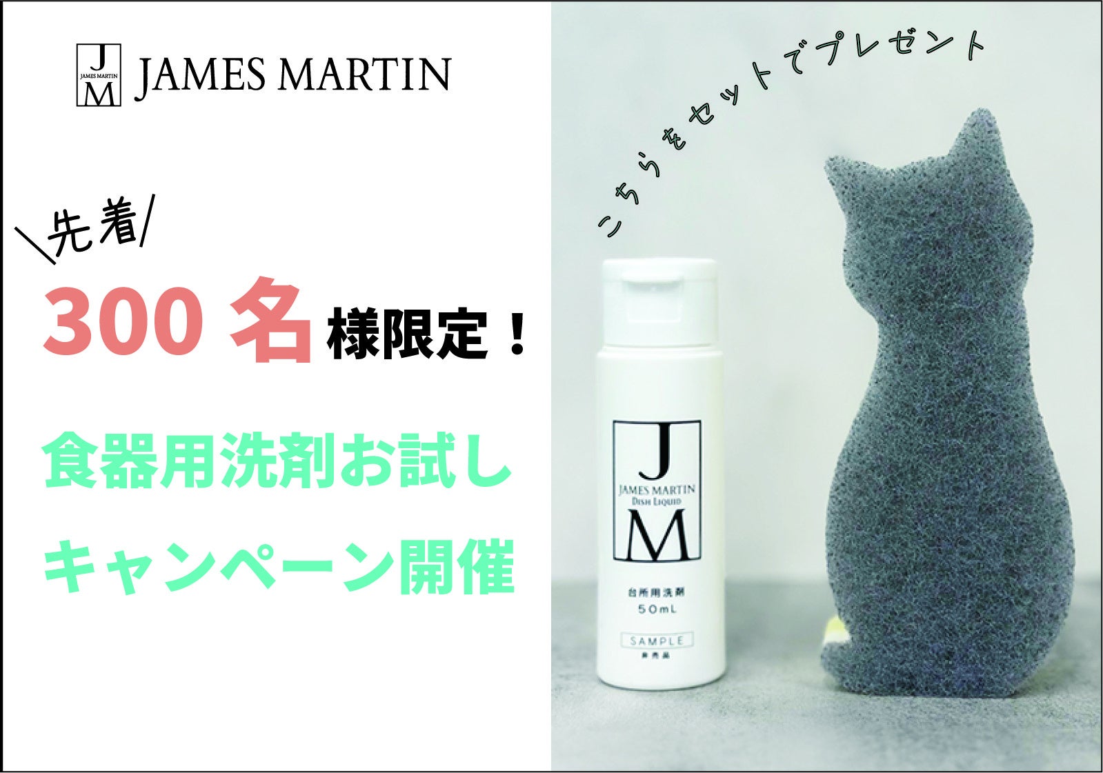 ジェームズマーティン「ディッシュリキッド50ml&キッチンスポンジ」のセットがもらえるキャンペーン開催!!