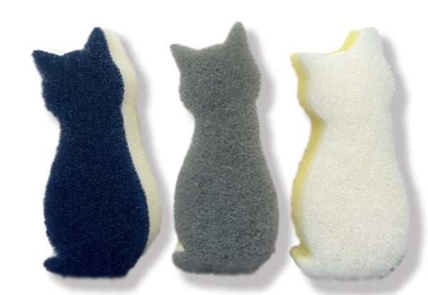 ネコの形がかわいらしい食器洗い用スポンジです。ワイングラスや、保存容器の角が洗いやすく持ちやすいコンパクトなサイズが特徴です。