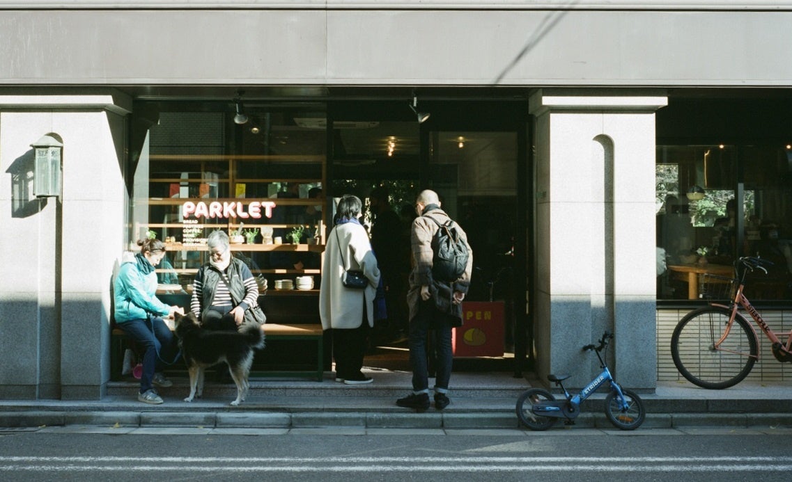サンフランシスコのベーカリーカフェと、カリフォルニアキュイジーヌをルーツとした店主ケイト (Kate Jaksich)とジェイジェイ(Jerry Jaksich)が、「日本に本当に美味しいサワードウブレッドの店 を作りたい」という思いで、日本橋にオープンしたベーカリーカフェ「Parklet」。ここでは、天然 酵母のパンや、丁寧に関係を築いた生産者から仕入れた素材を使った食事、地球環境に配慮したコー ヒーやナチュラルワインなどが朝から夕方まで楽しめます。日本橋店は堀留児童公園に隣接してお り、公園の一部であるかのような公共性の高い空間となっています。