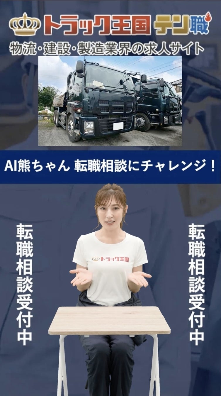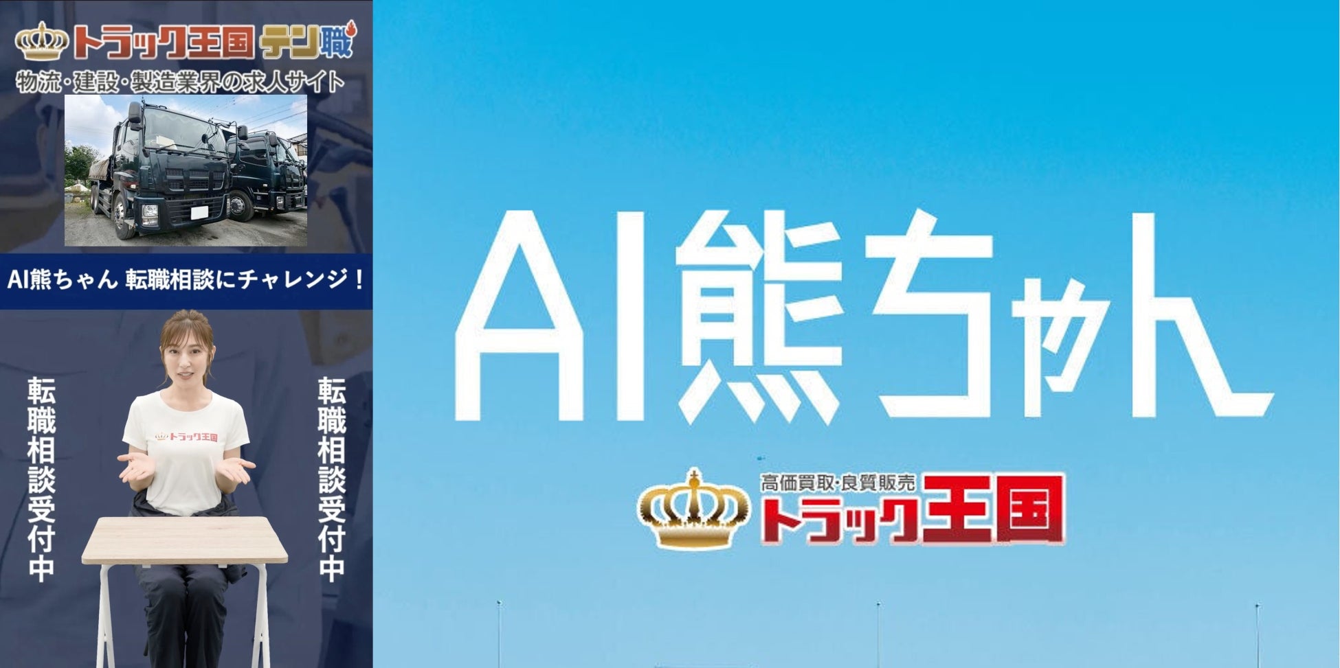 物流・建設・製造業界特化の求人紹介サイト「トラック王国テン職」でも「AI熊ちゃん」を配信することで、気軽に業界の転職・求人情報に触れてもらい、求職者がより自分に合った環境を見つけられるようサポートしていきます。
