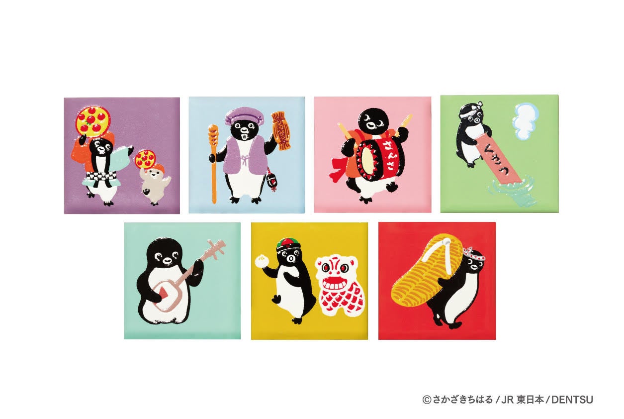 ポップアップストアの限定商品として、Suicaのペンギンが日本各地の文化を体験している様子をデザインしたアートマグネットをご用意しております。見ているだけで顔がほころびそうな、Suicaのペンギンのチャーミングな表情にご注目ください。