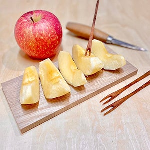 山口市阿東地域特産のりんごの伐採材を活用して、フォーク作りをします。自ら作り上げる可愛らしいフォークで山口のりんごを食べてみませんか?