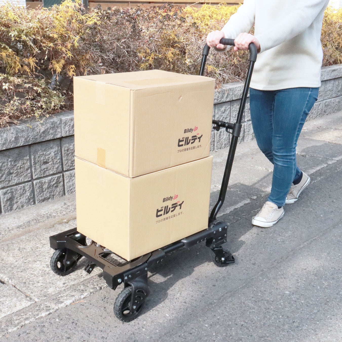 【2way台車】二輪兼用折りたたみ台車 クロキャリ 4輪台車としての使い方【ビルディオリジナルブランド】