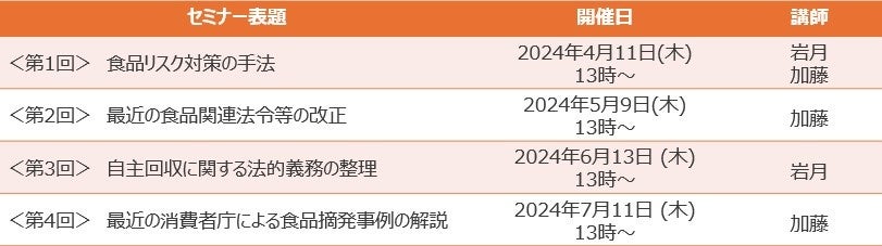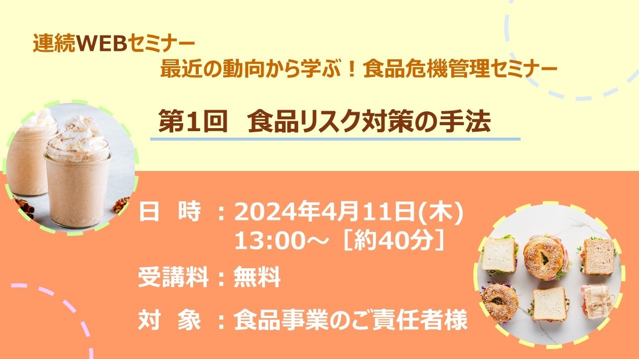 ※食品事業のご責任者様対象※【2024年4月11日開催】連続WEBセミナー◇第1回 最近の動向から学ぶ!食品危機管理セミナー◇
