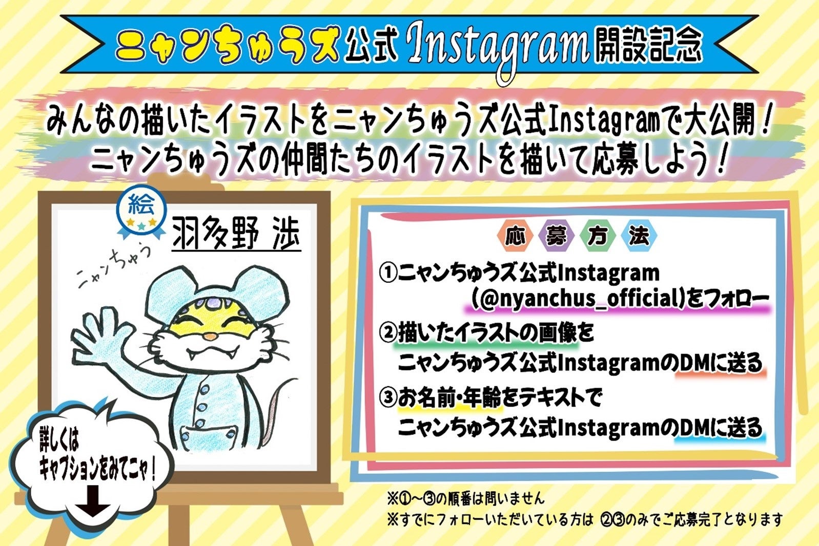 さらにニャンちゅうズ公式Instagram開設記念キャンペーンでは、みなさんから寄せられた、ニャンちゅうズの仲間たちを描いたイラストがニャンちゅうズ公式Instagram内のハイライトに掲載されるキャンペーンも実施します!