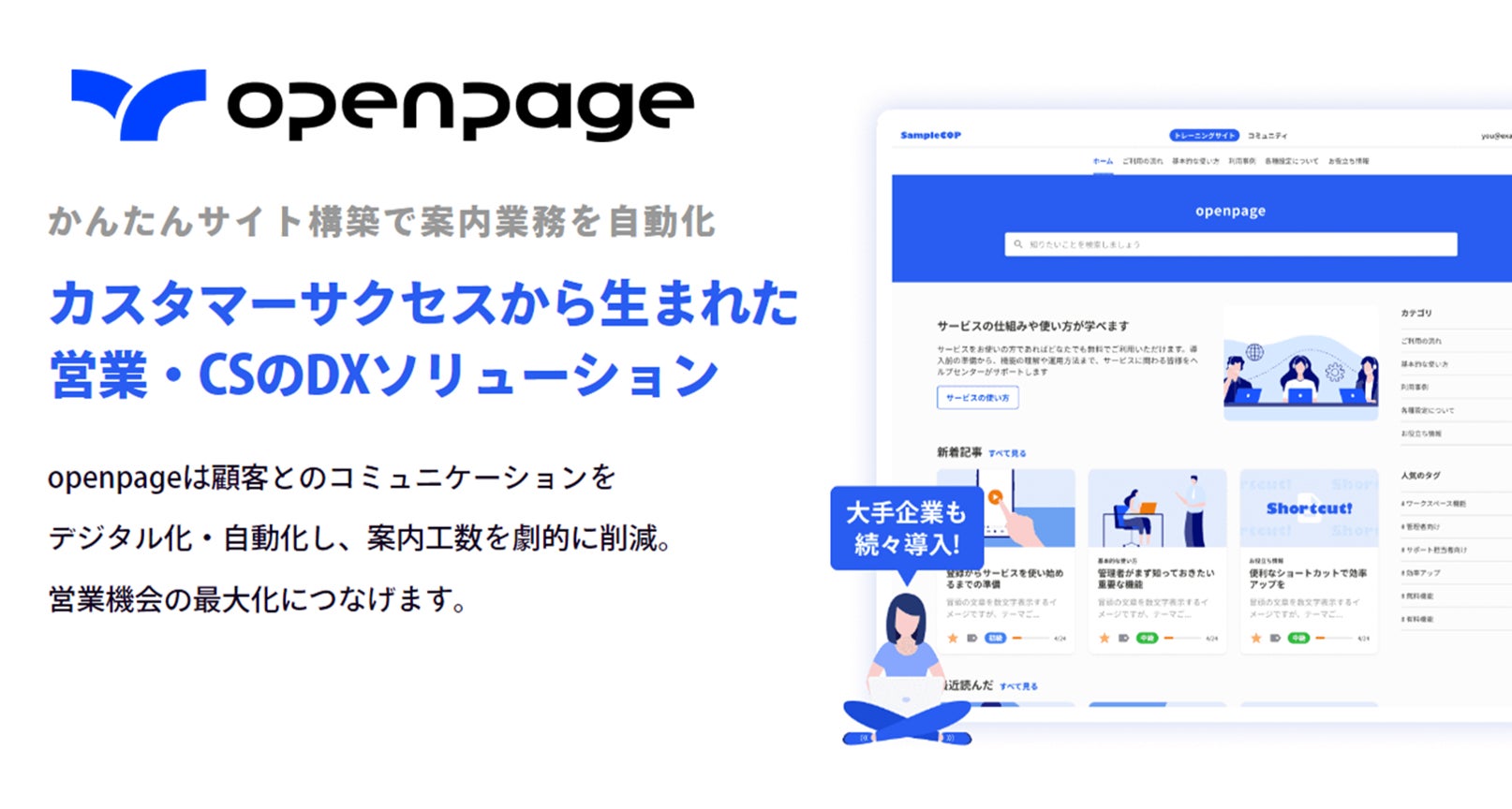 openpageは、カスタマーサクセスを熟知するメンバーが作った「顧客取引のDXソリューション」です。