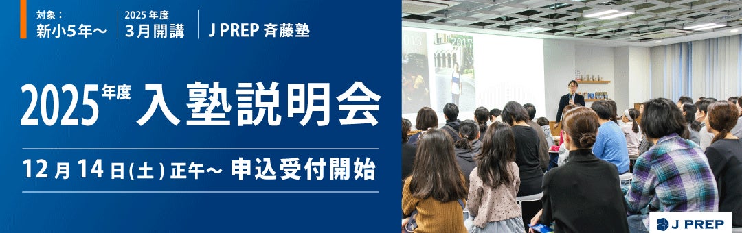 ⼩学⽣・中学⽣・⾼校⽣対象の英語塾 J PREP を運営する株式会社 J Institute(本社:東京都⽬⿊区、代表取締役:⻫藤淳)は、新規入塾生を募集し、12月14日(土)より説明会の申込受付を始めることをお知らせします。