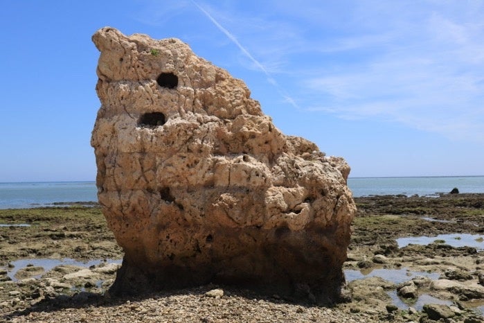 島では『イシイリー』とも呼ばれている『子宝岩』は子宝祈願として地元の人は以前から訪れていたとされているパワースポット。縦に二つの穴が空いている4mほどの岩には、子授けを祈願してそこに石を投げ、上に入ったら男の子、下に入ったら女の子に恵まれるともされていました。 また、慶良間諸島(けらましょとう)に向かって沈んでいく美しい夕日を西海岸から堪能することができるロマンティックなスポットで、地元では当たり前の場が、“恋が叶う島”として注目を集めています。さらに伝統芸能・組踊りの『手水の縁』の舞台は瀬長島だと考えられており、恋愛と古来より縁が深かったと考えられています。