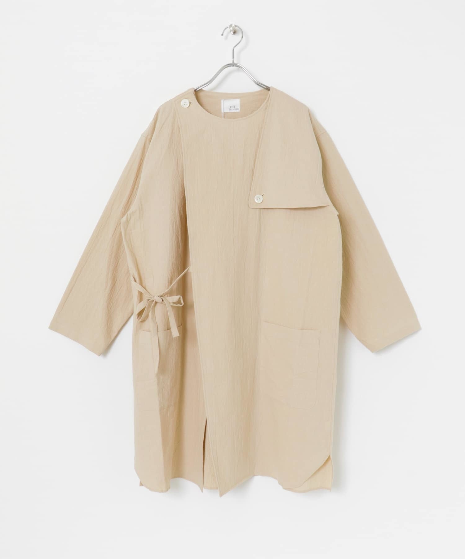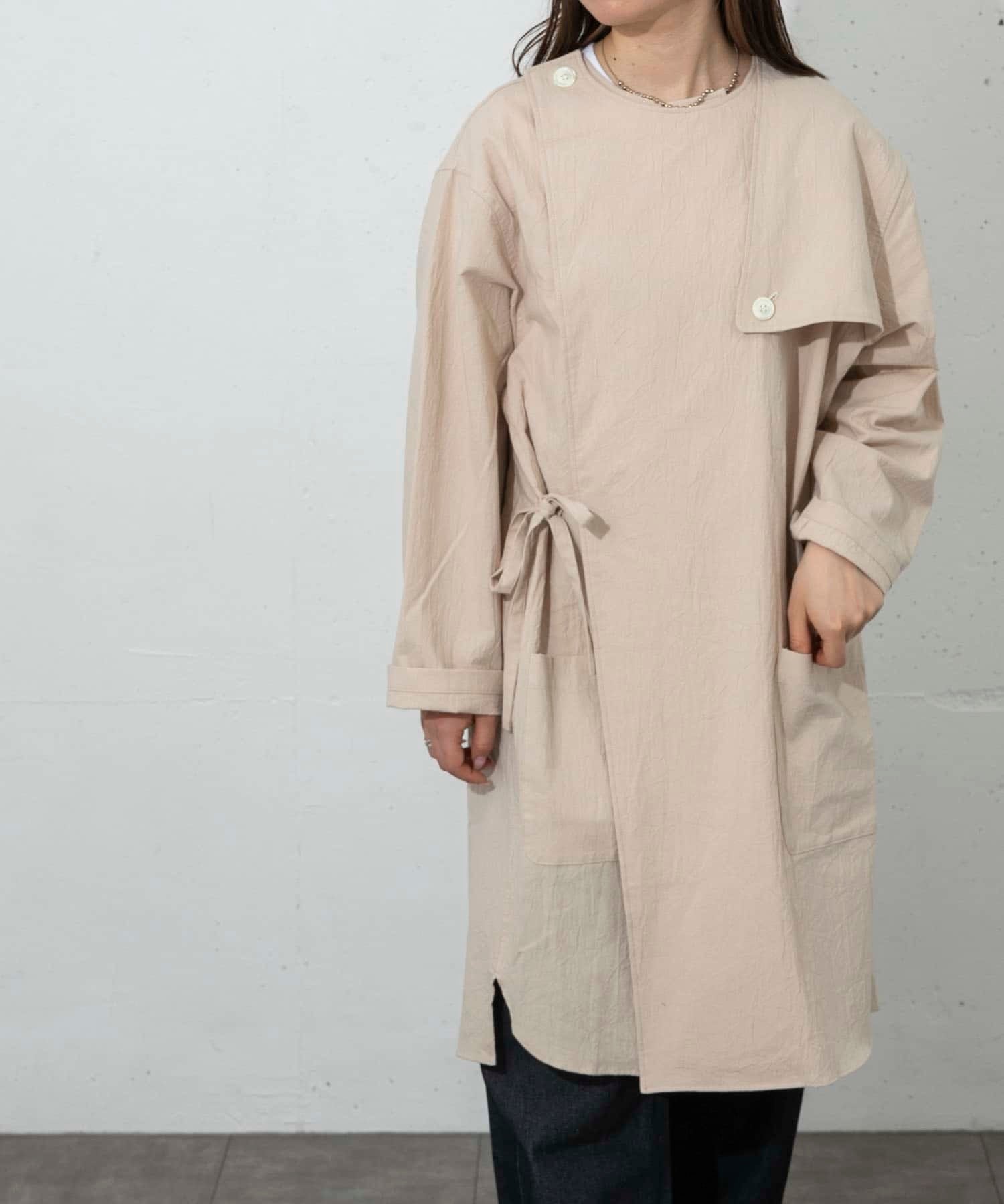 トレンチコートのディテールを取り入れ、ノンカラーからトレンチカラーまでアレンジできる飽きのこないアイテム。裾のラウンドヘム&スリットでスタイリッシュに着こなせます。
