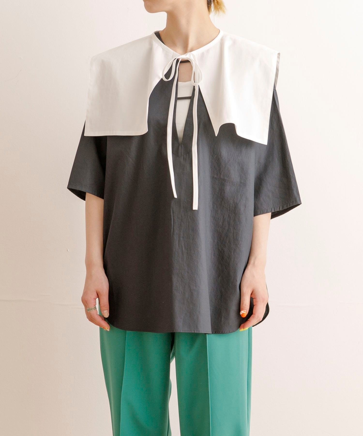 前後どちらでも着用でき、つけ襟がセットになった3WAYブラウス。いつものスタイリングに襟を付けるだけで今っぽい印象に。スリットをバックに持ってくることで抜け感のある女性らしいスタイルを楽しむことができます。