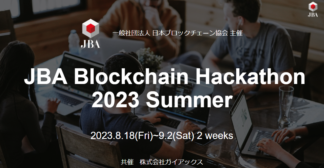 一般社団法人 日本ブロックチェーン協会(代表理事:加納 裕三、以下、JBA)は、株式会社ガイアックス(本社:東京都千代田区、代表執行役社長:上田 祐司、証券コード:3775、以下、ガイアックス)との共催にて、ブロックチェーンのアプリ開発の事前知識がつけられる「JBA Blockchain Bootup Day」と、次世代のweb3業界を担う人材を発掘する、2週間のハッカソン「JBA Blockchain Hackathon 2023 Summer」を開催します。