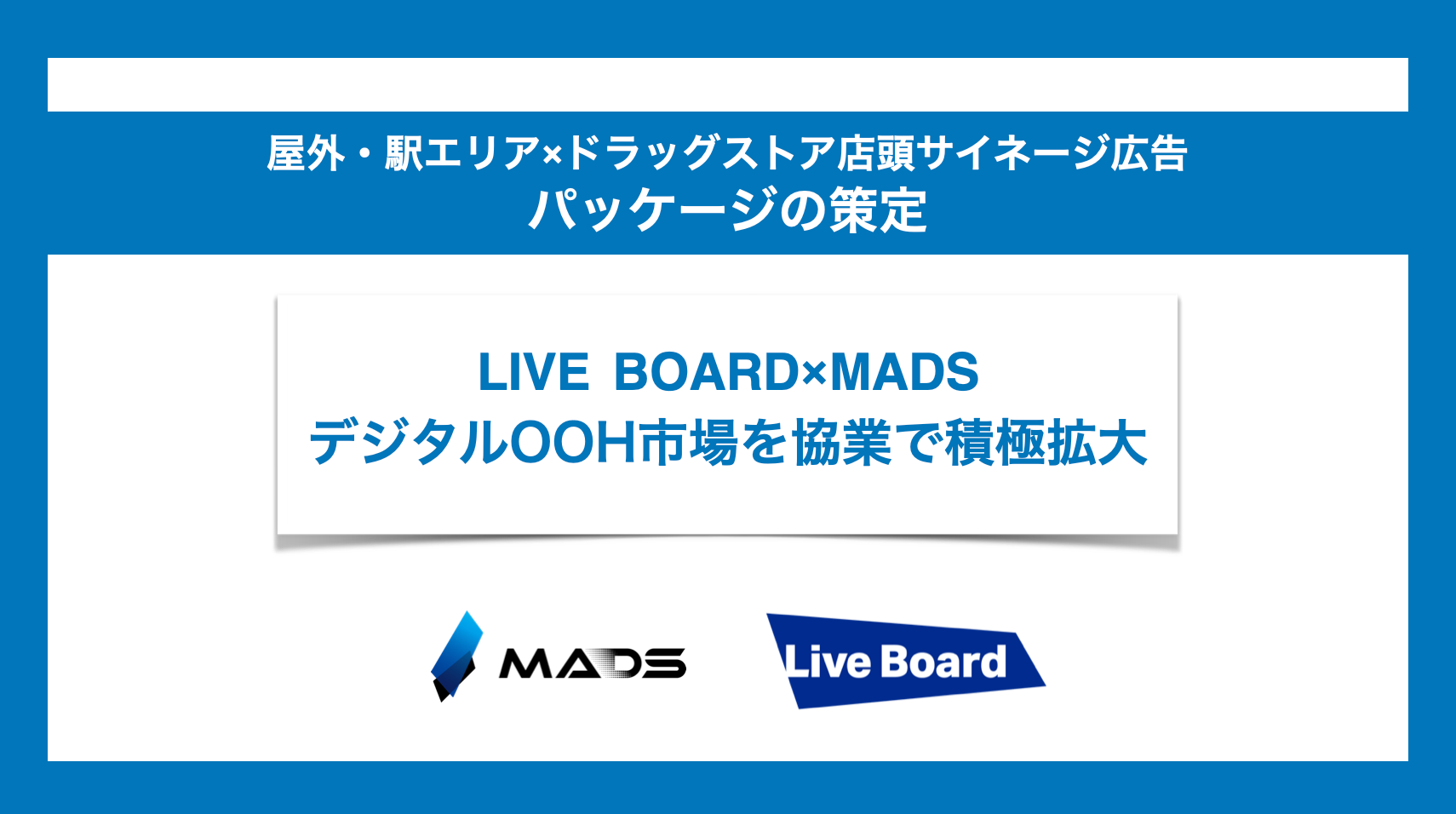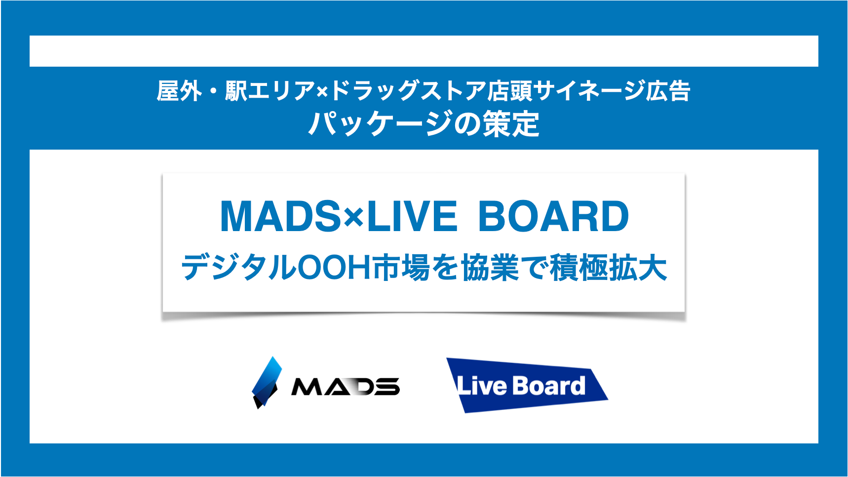 今回の取り組みを機に、MADS並びにLIVE BOARDは、双方のデジタルOOHにおける強みを活かすことで、消費者に対して外出〜帰宅に至るまでの屋外・駅・店舗などの接点をシームレスに強化し、特に消費財領域を中心とした購買促進が出来るソリューションを実現していきます。
