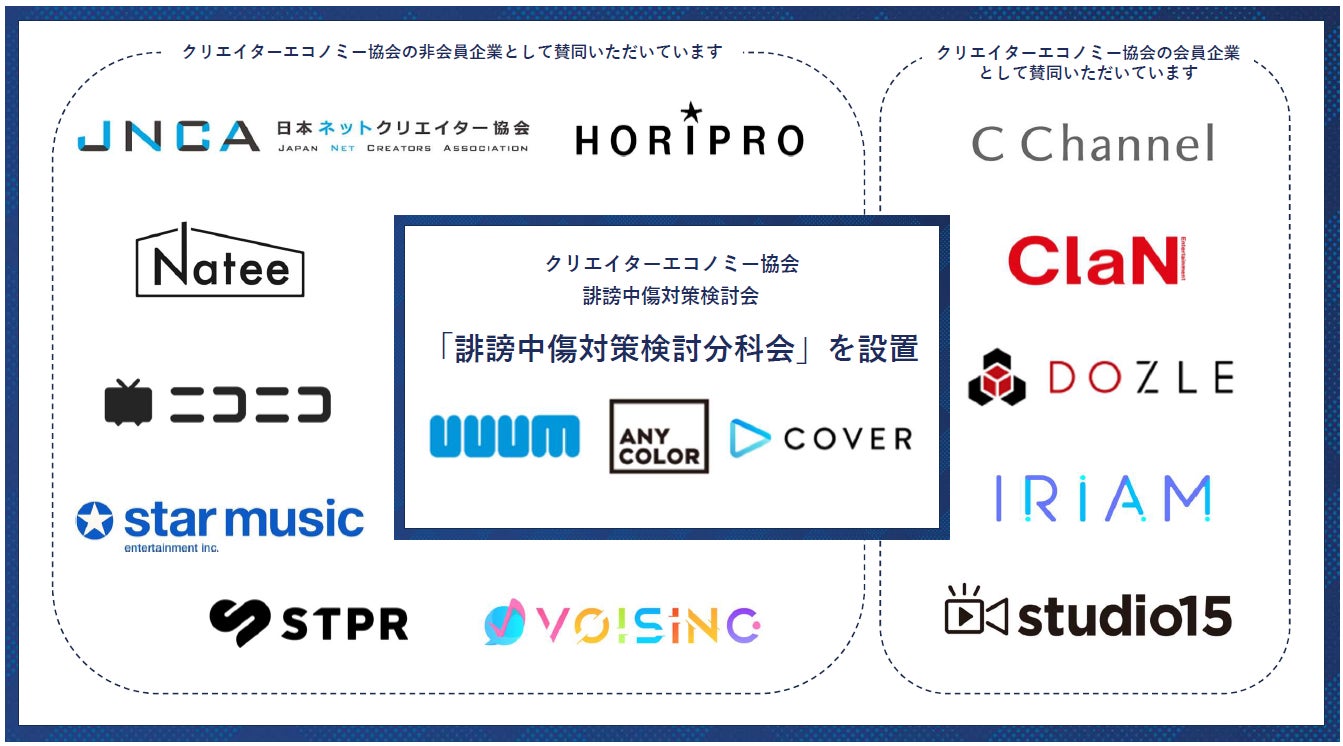 そこで、所属クリエイターの誹謗中傷対策に通報窓口や対策チームを設置して取り組んできたUUUM株式会社、ANYCOLOR株式会社、カバー株式会社の3社で構成される分科会を設置する運びとなりました。
