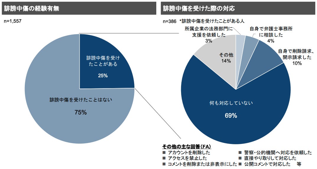 クリエイターの4人に1人が誹謗中傷を受けた経験があるものの、約7割は何も対処していませんでした。