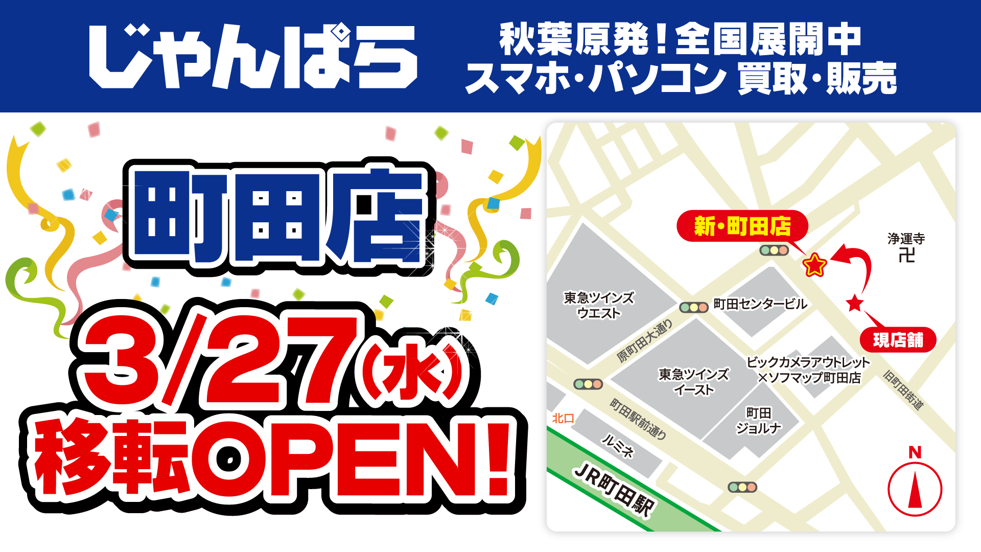 「じゃんぱら町田店」3月27日(水)移転オープン!
