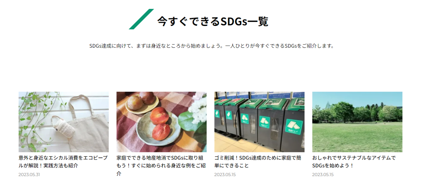 SDGs達成に向けて大切なことは、一人ひとりが身近なところから始めることです。身の回りやご家庭で手軽に取り組めるSDGsをご紹介します。