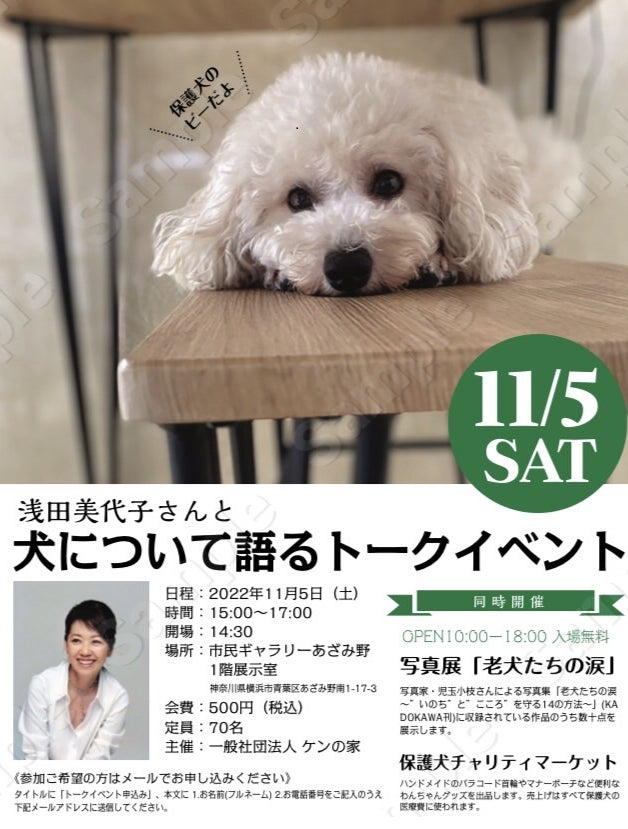 ケンの家 「多頭飼育崩壊を知って」 ゲストに浅田美代子さんと伊藤寧々さん〈横浜市青葉区〉