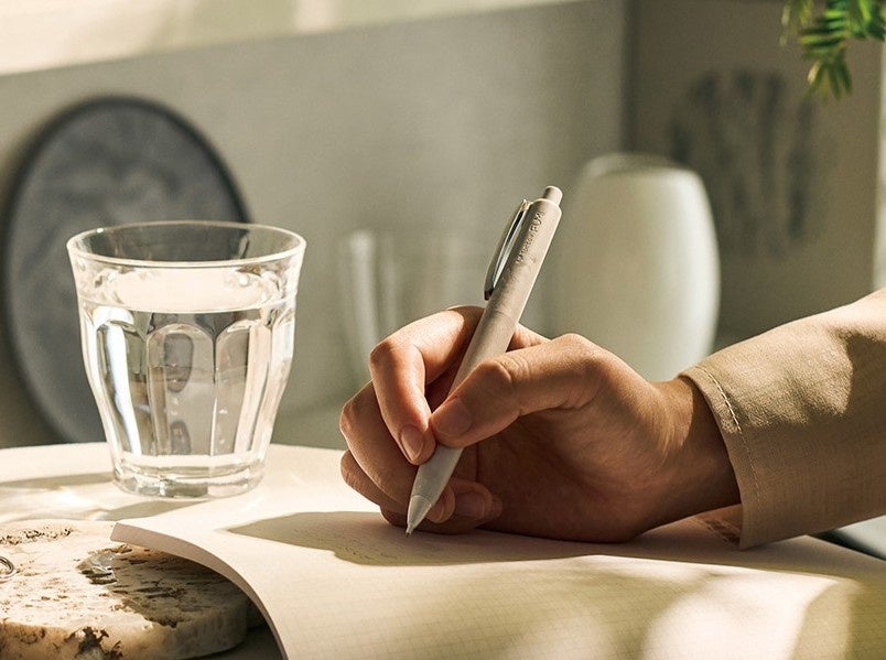 特長は、(ペンボディとして)初めてのさらさらな触感と、陶器と同等の熱伝導率で、熱を溜めにくくグリップがいつもさわやかな点。加えて、材料に陶器に近い重さがあるため筆圧を補助して筆記がスムーズです。