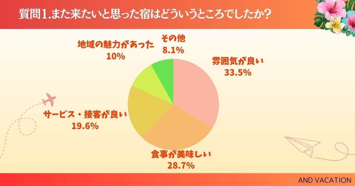 そこで、また来たいと思った宿の条件をアンケートで聞き取り調査しました。ぜひ、チェックしてみてください!