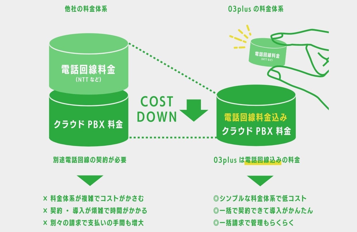 <他社クラウドPBXサービスと03plusの比較イメージ>