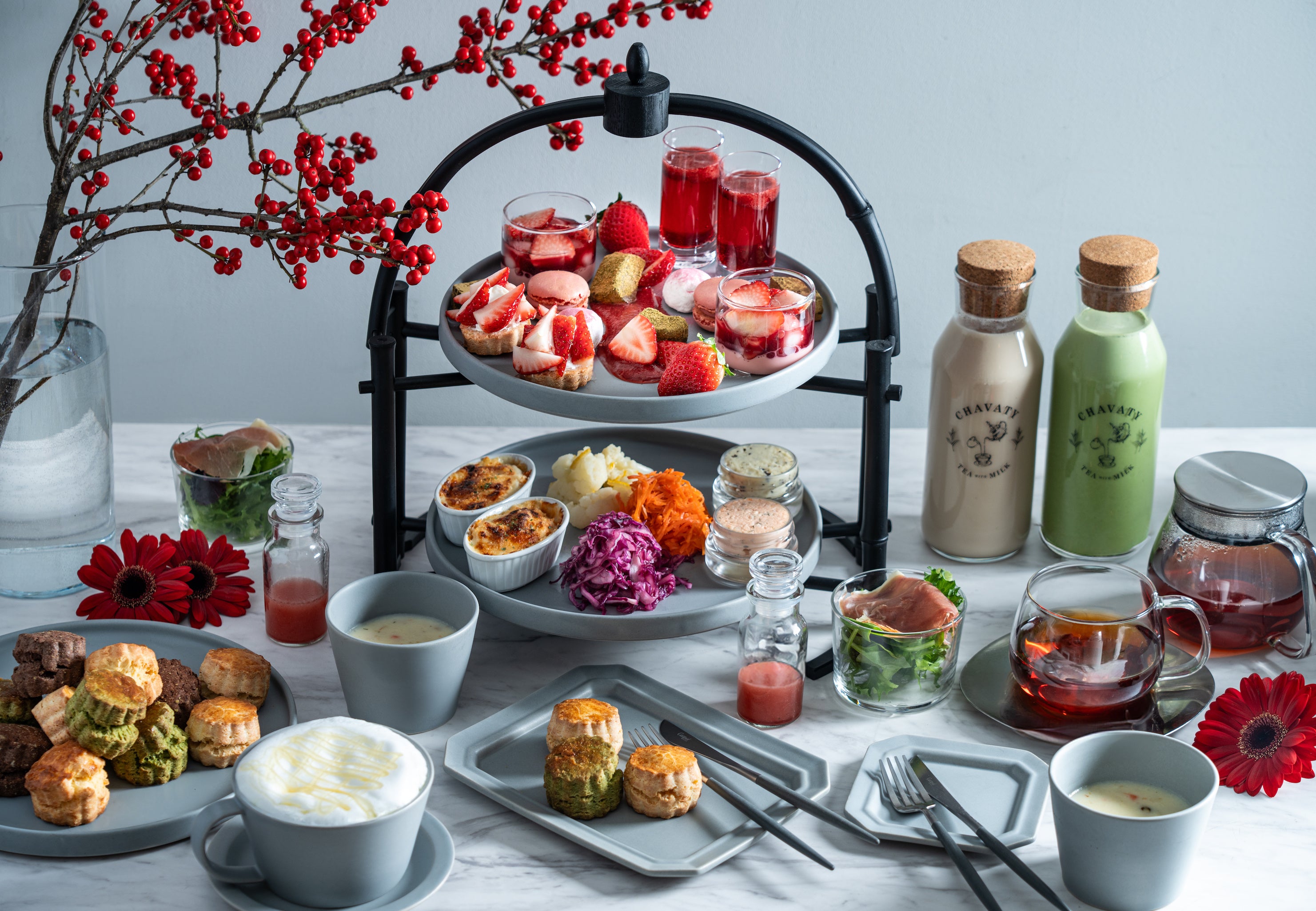 CHAVATY京都嵐山「ブリリアントレッド・アフタヌーンティー」メニュー