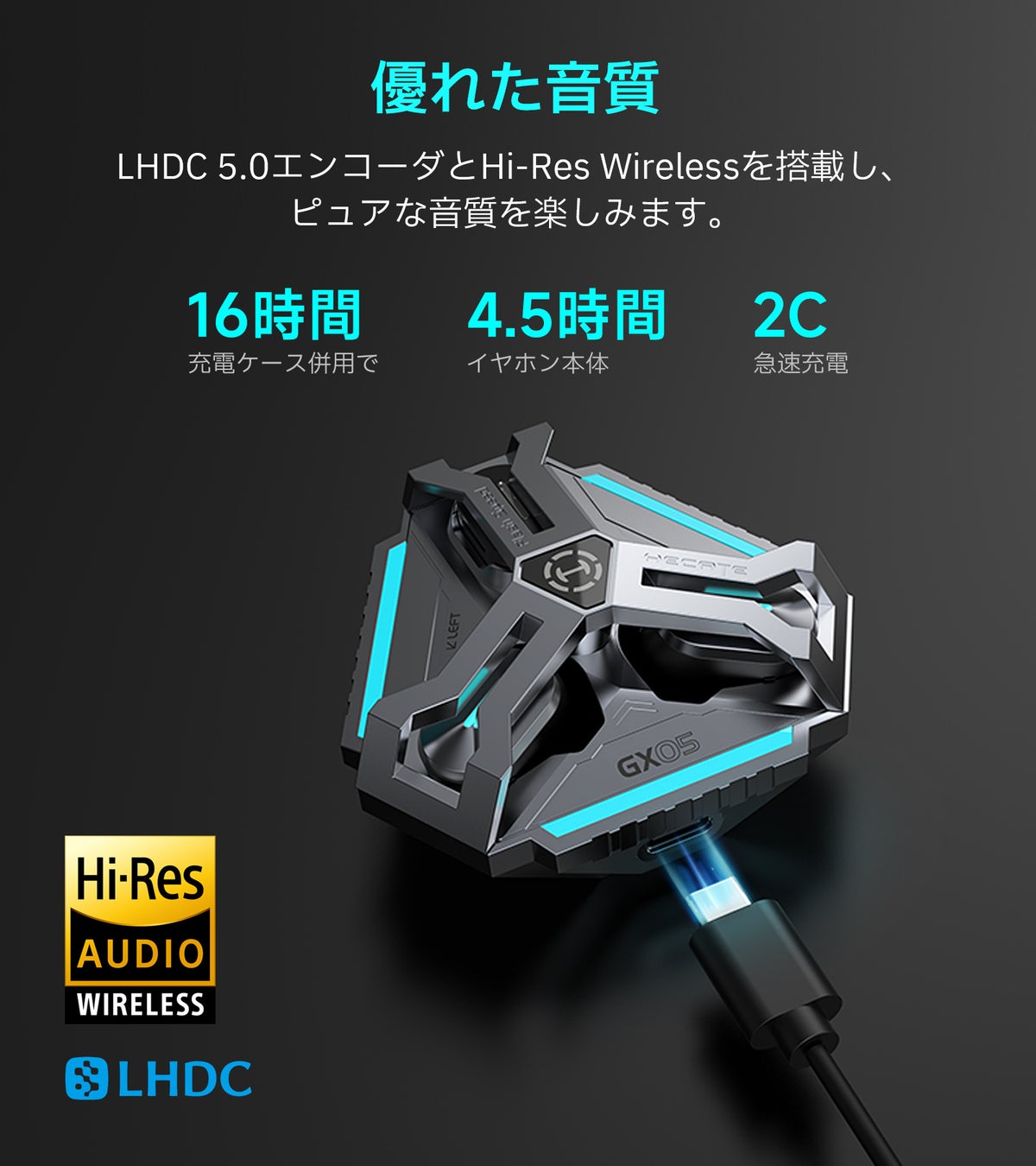 音楽愛好家も注目。GX05はLHDC 5.0 HDデコーディングとハイレゾワイヤレス認証をサポート。これにより、驚異的な精度で音の詳細を捉え、最大96kHz/24bitのオーディオデコーディングで、より豊かな音楽体験を実現します。