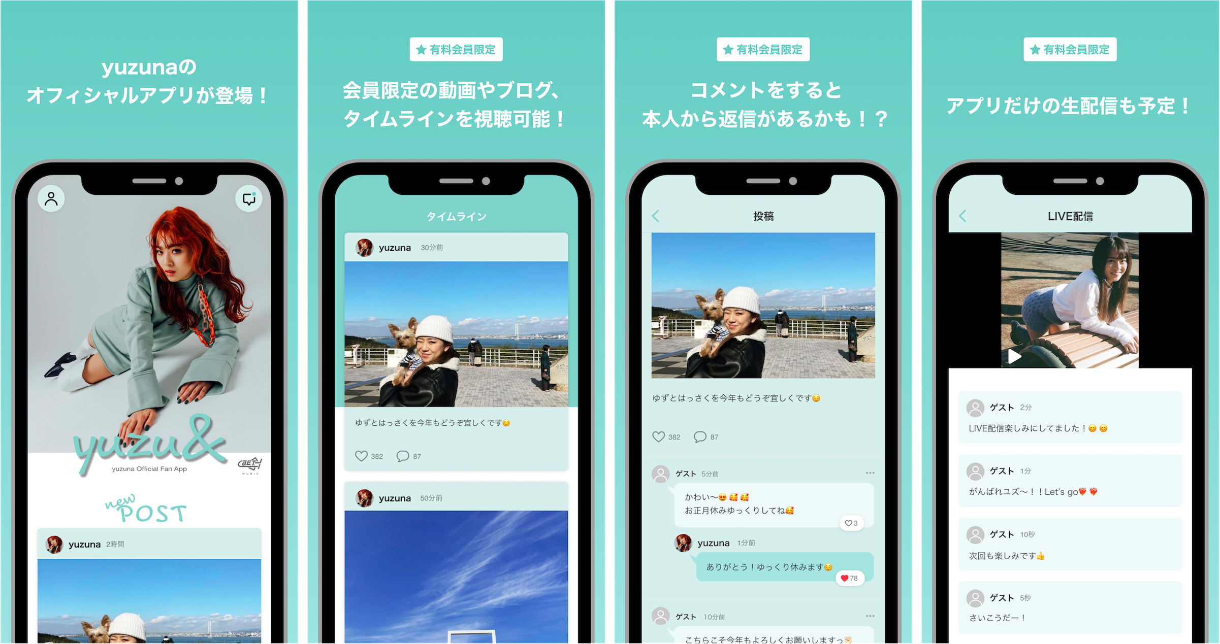 本人が投稿するタイムラインにコメントするとコメント返信がきたり、会員限定ムービーやプロジェクト制作過程が見えるブログなど、yuzunaの素顔を垣間見れるここだけのコンテンツが盛りだくさんです。