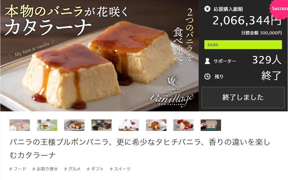 - クラウドファンディングサイト「Makuake」で688%達成した「リコ・カタラーナ」