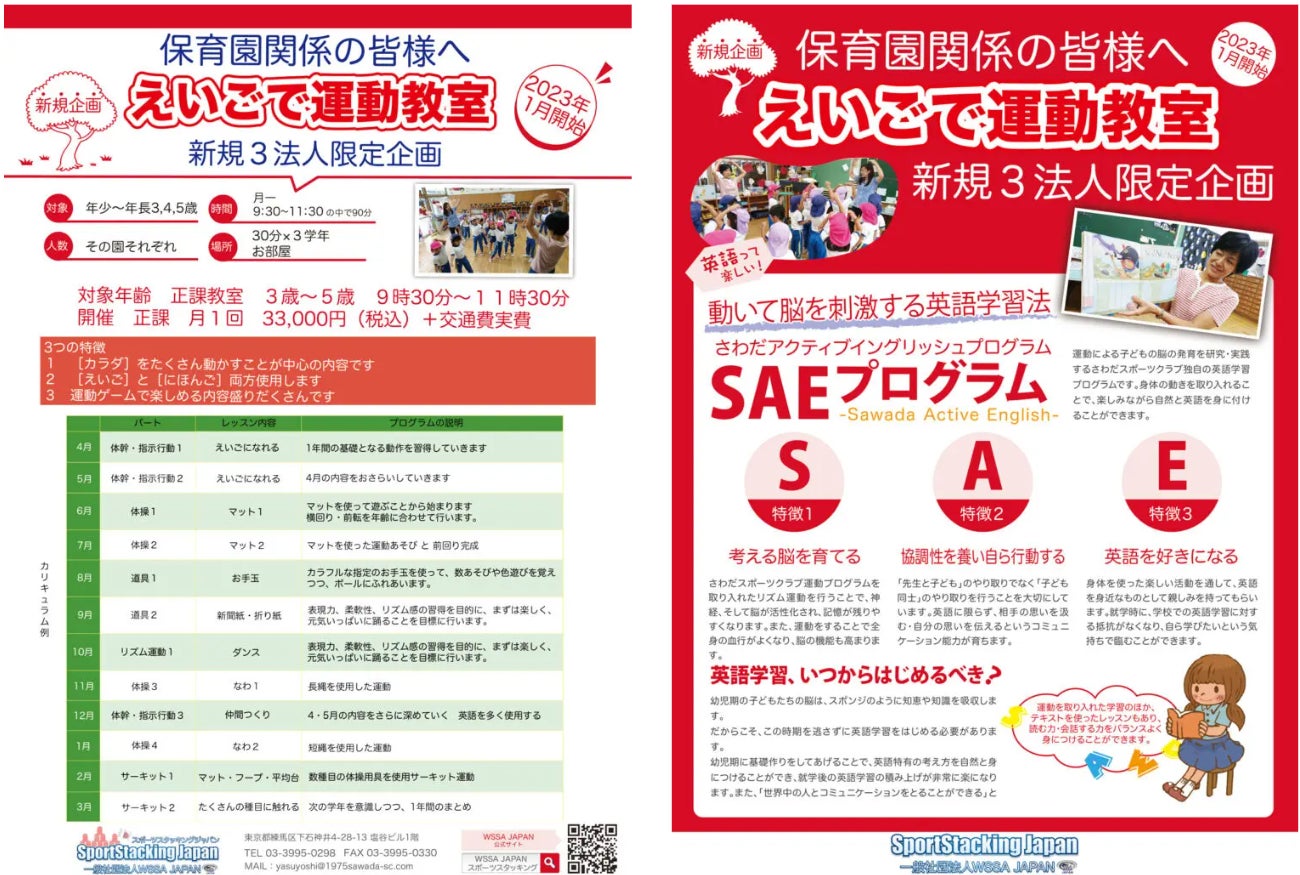 さわだSCでは、まだ導入事例の少ない「運動と英語」を同時に導入できるプログラムによって、多くの園がこどもたちの幼少期の基礎作りに貢献できる取組みとして活動して参ります。