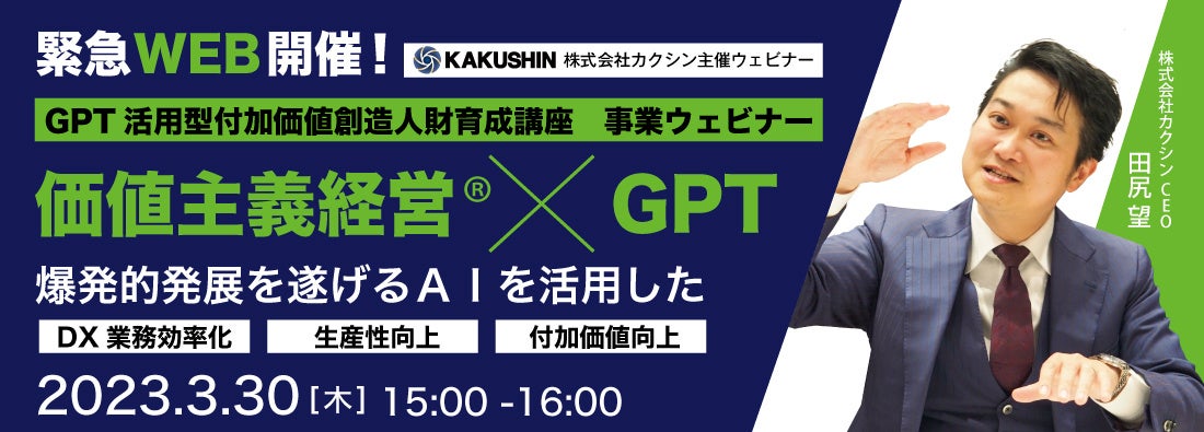 株式会社カクシンは、日本初(※)となる生成型AI「GPT」を活用した、付加価値創造人財 育成事業を開始することを発表いたします。