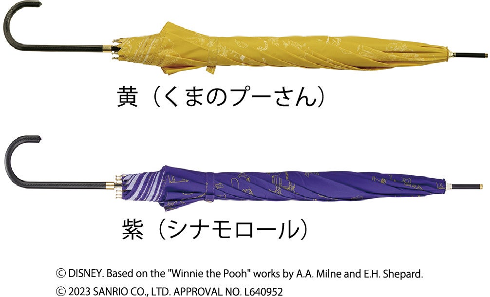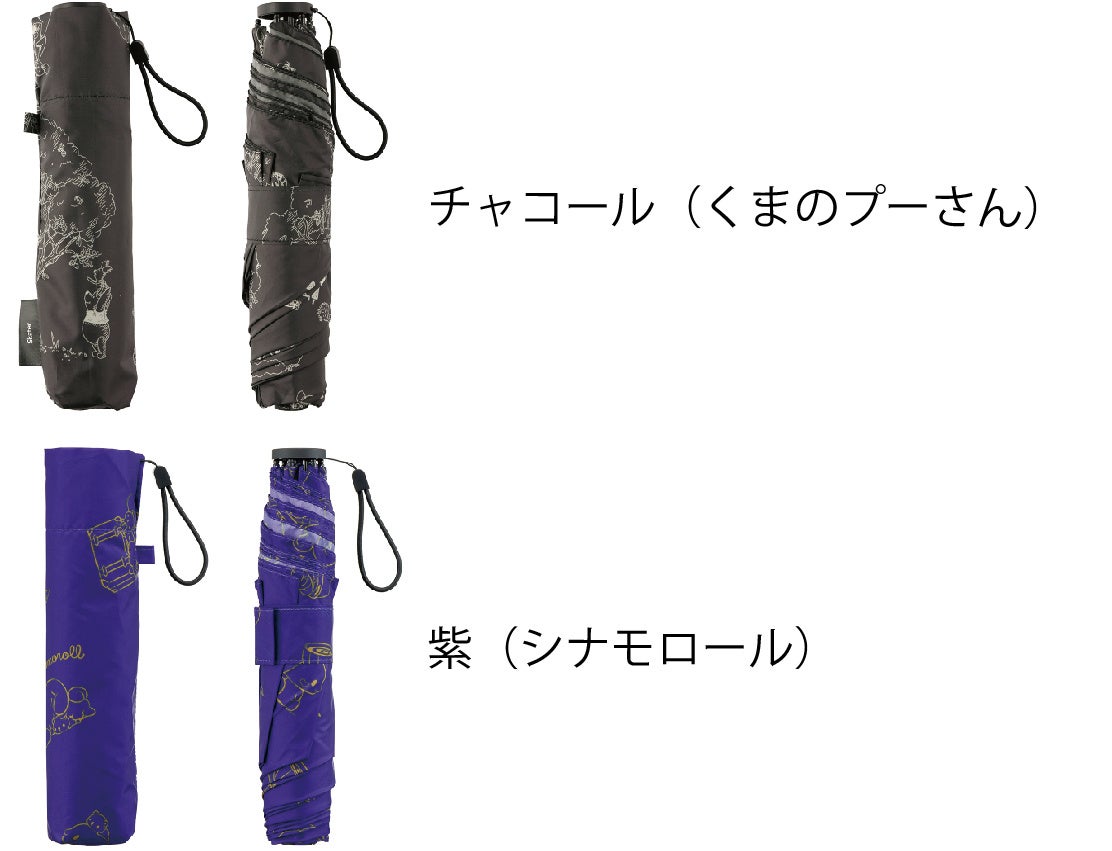 傘の生地にはディズニーキャラクター(くまのプーさん)とサンリオキャラクター(シナモロール)を採用。大人女性が抵抗なく使えるようデザインとカラーにこだわりました。