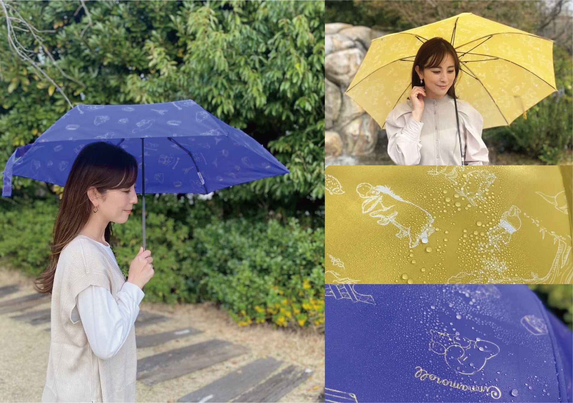 可愛くてハイスペックな傘!サッと振るだけで水滴が落ちてすぐに乾く「超はっ水傘」とスマホよりもずっと軽い「軽量折りたたみ傘」の2 種類を好評発売中!