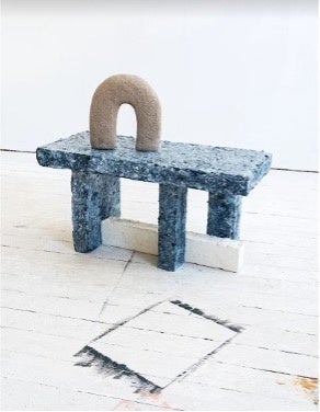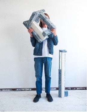 そして、今回のアーティストは、デザイナーの レニー・シュテープ(1994年生まれ)です。多分野にわたるアーティストである彼は、サイドテーブル、スツール、ランプ で構成される家具シリーズ「Fluff Stacks」を制作しました。 そのアプローチは、科学実験を彷彿とさせます。工業用パルプ機械で水、でんぷん、デニム生地を混ぜ合わせて独自のデニムレシピを考案し、まったく新しい素材を生み出しました。デニムパルプを型に押し込んだ後に、完全に乾燥させ、最終的にアート作品に仕上げました。