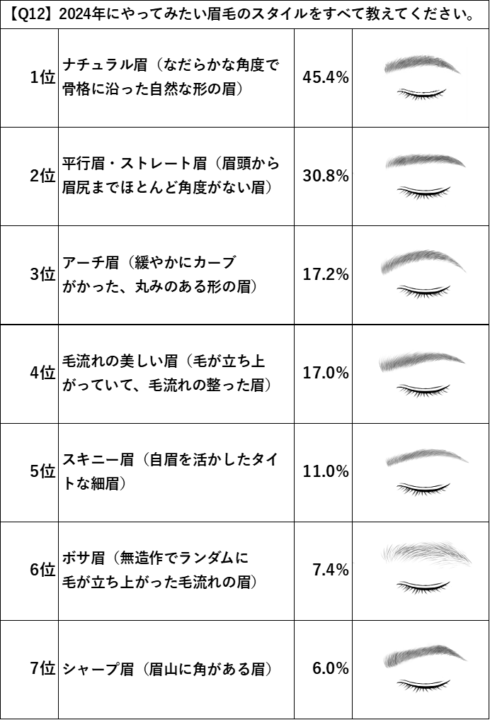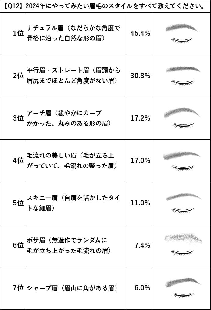 「2024年やってみたい眉毛スタイル」では約半数が回答の「ナチュラル眉」が圧倒的人気!
