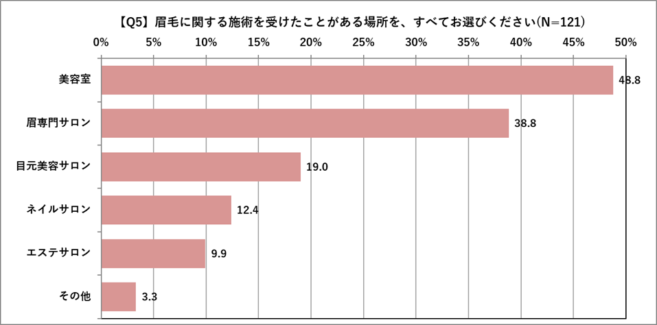 中でも「美容室」で施術を行う方が約2人に1人と、ヘアケアと同時に眉を整えるのがトレンド?