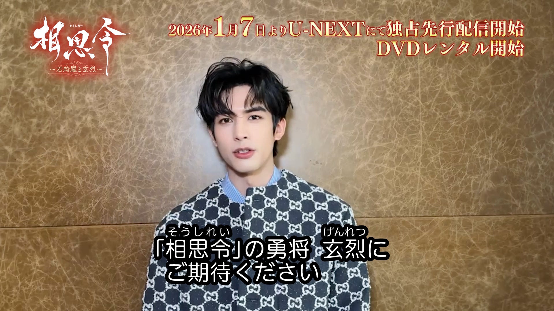 日本での「相思令(そうしれい)~君綺羅(くんきら)と玄烈(げんれつ)~」リリースを記念して、主演のソン・ウェイロンからメッセージが到着!