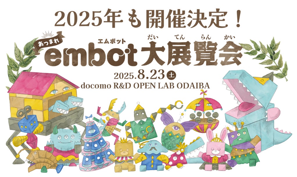 プログラミング教育サービス「embot(エムボット)」※1の企画開発を展開する、株式会社e-Craft(本社:神奈川県、代表取締役/CEO:額田 一利)は、2025年8月23日(土)、docomo R&D OPEN LAB ODAIBA(東京都港区)にて、「embot」を活用した作品展示会「embot大展覧会2025」を開催いたします。本イベントは、子どもたちが工作とプログラミングを通じて論理的思考力や創造力を育み、その成果を発表する貴重な機会を提供することを目的としています。