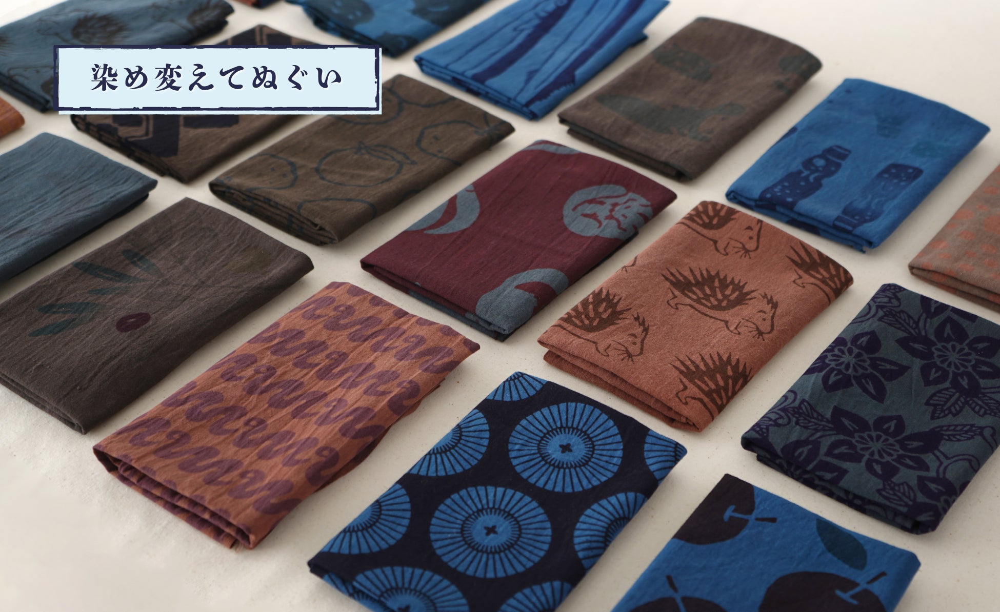 毎年人気の奄美大島の伝統的な古代染色を行っている金井工芸さんの【泥染・藍染・草木染てぬぐい】が今年も登場します。生産過程で発生した染めムラや色ブレがある手ぬぐいを、後染めで新たな価値を加えることで、アップサイクルしたアイテムです。
