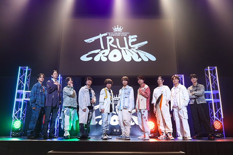 『東京カラーソニック!!』第3弾となるオフィシャルイベント「東京カラーソニック!! Special Live~TRUE CROWN~」にはメインキャラクターを演じる千葉翔也、上村祐翔、斉藤壮馬、中島ヨシキ、梶原岳人、木村良平、武内駿輔、江口拓也、広瀬裕也、梅原裕一郎の10人が今年も勢ぞろい。本イベントビジュアルをイメージした衣装を着て登場し、昨年よりもボリュームアップした朗読劇・ライブ・トークなどで会場はカラソニ熱をまとい盛り上がりをみせました。