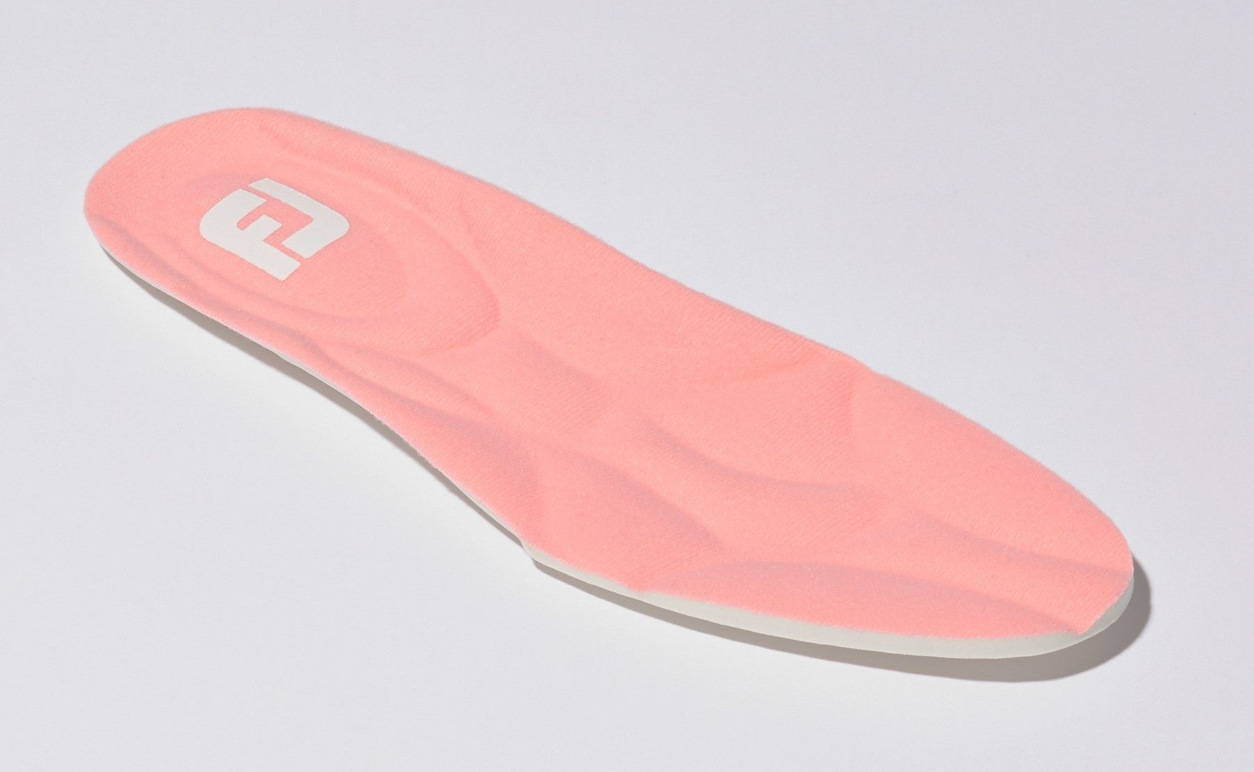 多くの女性ゴルファーから支持を受けている防水ソフトスムースアッパーを採用。天然皮革並みに柔らかくしなやかなアッパーが足首を包み込む3Dフォーム構造、そしてクッション性に優れたインソールと連動し、高いフィット性を実現。
