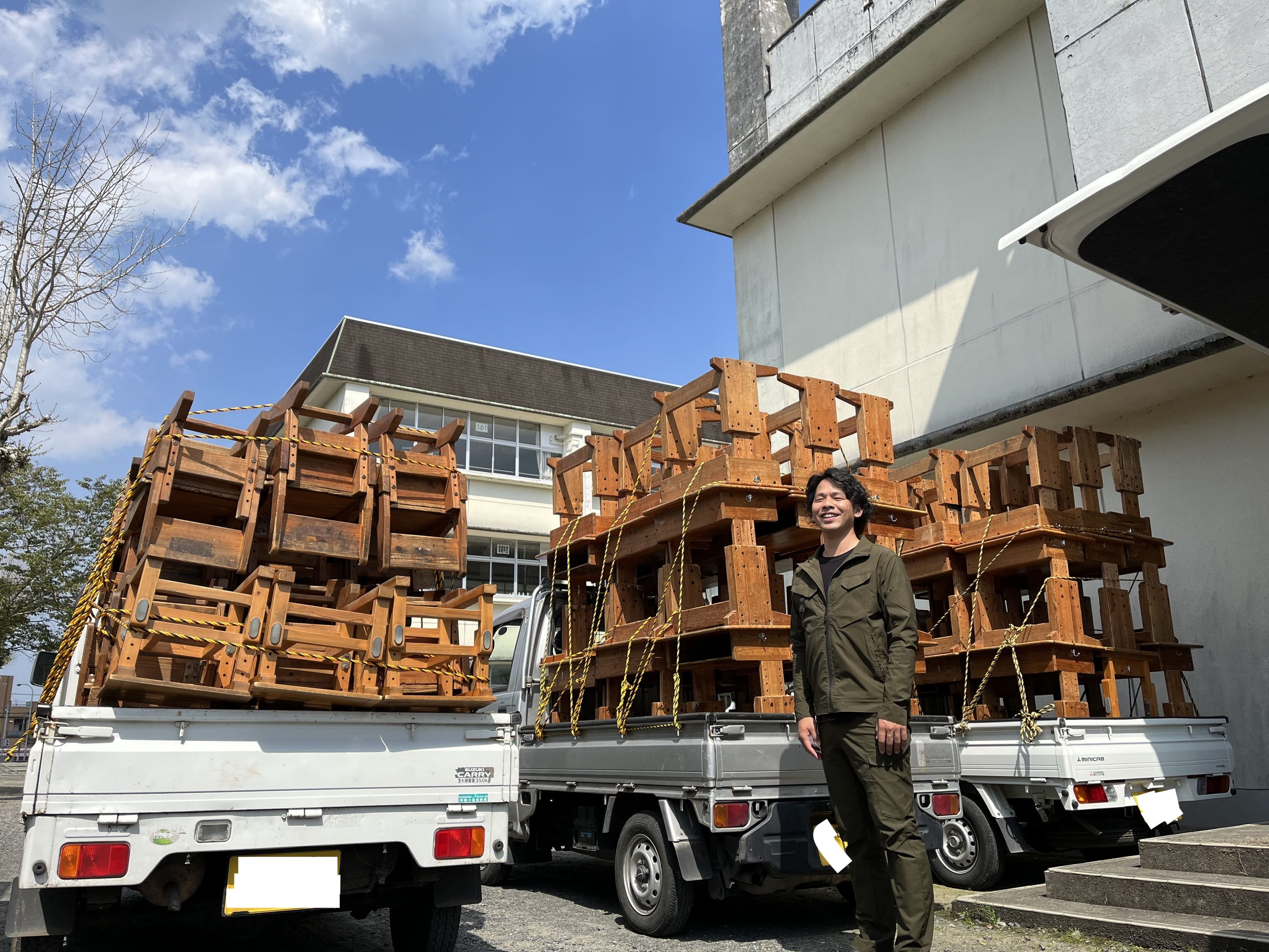 今回のプロジェクトでは、毎年一定数破棄されていた小学校の机と椅子を、廃棄する以外の活用方法はないかという株式会社久永様からのご相談をきっかけに、アップサイクルに先進的に取り組んでいる東串良町の山中醤油株式会社様のご協力をいただきながら、さまざまな分野の方々のアイディアを募集するに至りました。