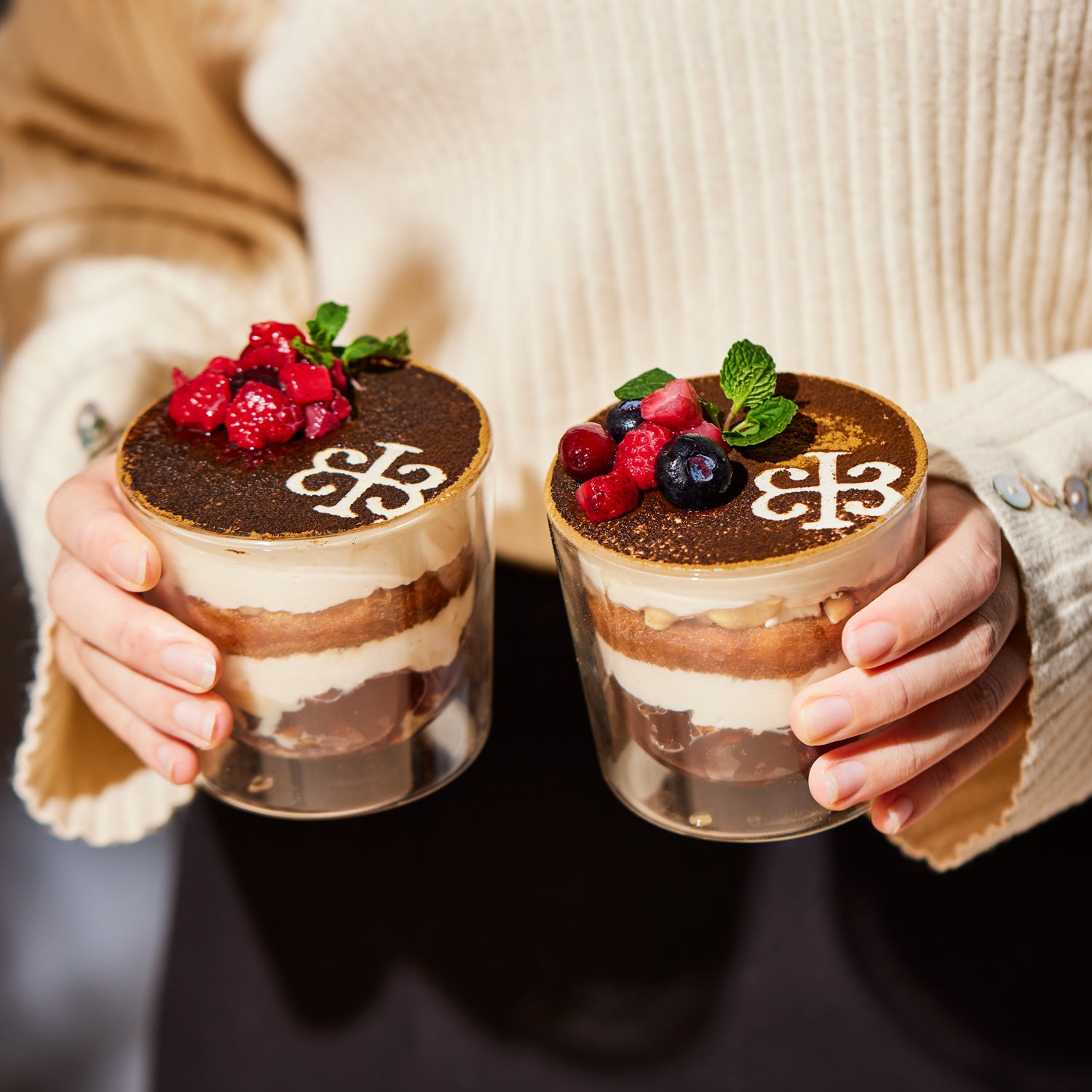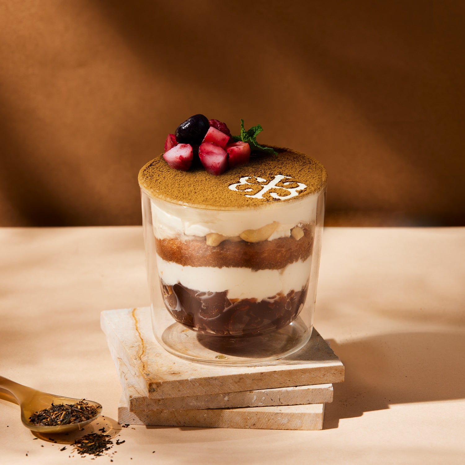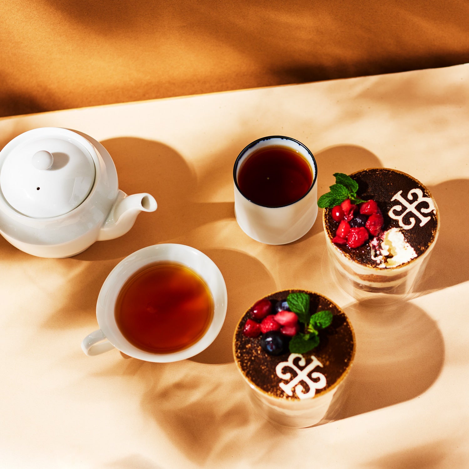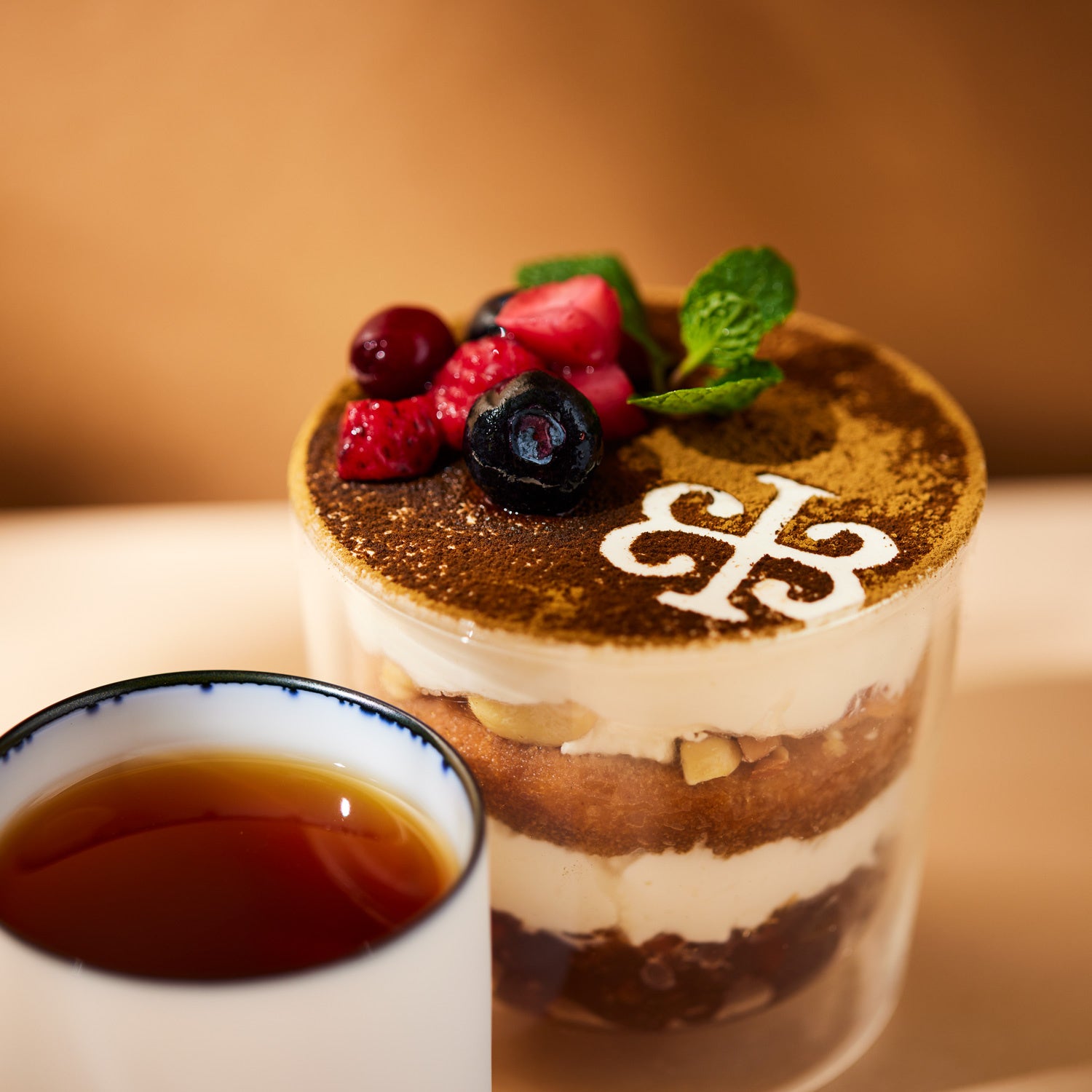 THREE TEA CAFEにお茶を使った冬の新作スイーツ「和紅茶ティラミス」が登場。温暖な気候で育った茶葉特有の甘みとコクを感じる九州産の和紅茶を使い、香り華やかなティラミスに仕上げました。マスカルポーネを贅沢に使用したなめらかなクリームと、優しい甘さの和紅茶シロップがたっぷりしみ込んだスポンジ生地、食感のアクセントにミックスナッツを重ねています。食べ応えはありながらも、下層の和紅茶ゼリーのつるんとしたのど越しで後味はさっぱりと召し上がっていただけます。